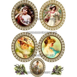 Набор карт для декупажа А4 "Ажурные портреты" 54г/м2, 5шт 27-0065-1