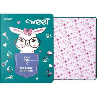 Дневник "deVENTE. I am so sweet" универсальный блок, офсет 1 краска, белая бумага 80 г/м?, твердая обложка из искусственной кожи, шелкография, аппликация в виде кармана, цветной форзац, 1 ляссе 2021977