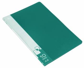 Папка пластиковая 0.6мм, с 10 прозрачными вкладышами, зеленая, Бюрократ -BPV10GRN