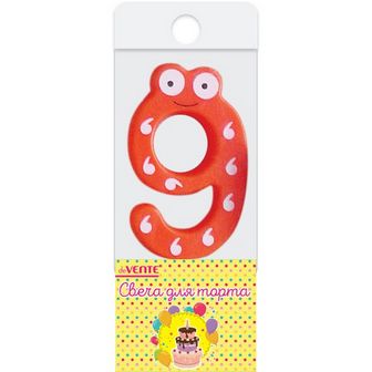 Свеча-цифра для торта "deVENTE. Смешная" 9, размер свечки 6,1x3,9x0,85 см, с золотистым рисунком, в пластиковой коробке с подвесом 9060740