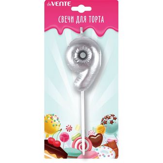 Свеча-цифра для торта "deVENTE. Воздушный шарик" 9, размер свечки 4,2x3,0x1,4 см, цвет серебристый, в пластиковой коробке с подвесом 9060022