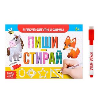 Многоразовая книжка с маркером «Пиши-стирай. Я рисую фигуры и формы», 12 стр., БУКВА-ЛЕНД 3847518