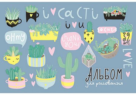 Альбом для рисования 32л. "Ассорти из кактусов", обл. мелов., Апплика С0551-42