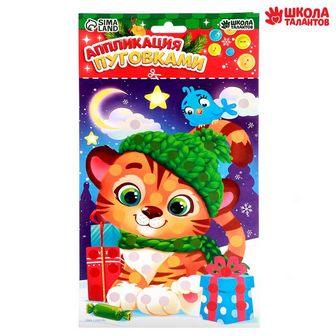 Аппликация пуговками "Тигренок с подарками"+ клейкая лента 7015611 7015611