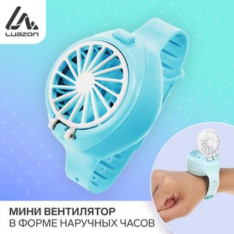 Мини вентилятор в форме наручных часов LOF-10, 3 скорости, поворотный, голубой 7348407
