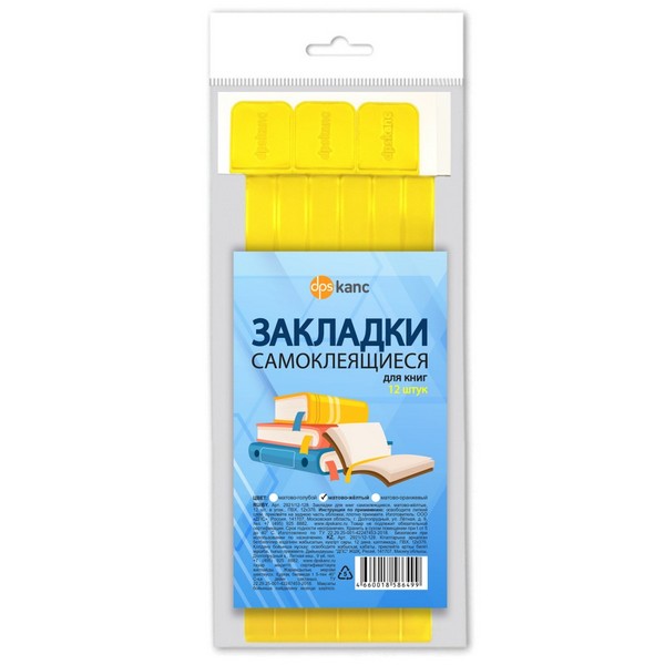Закладки для книг самоклеящиеся 12шт. в упак., 12*376, матово-желтый, ДПС 2921/12-128