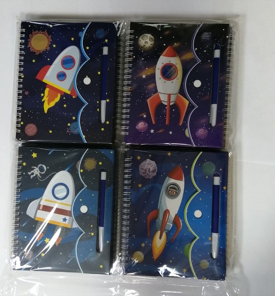 Блокнот+ авторучка детский: "КОСМОС" цветная обложка 7-БЦ с клапаном на липучке /ассорти/, двойная евроспираль; блок-клетка, 48 листов; 18*14,5 см. МС-6146