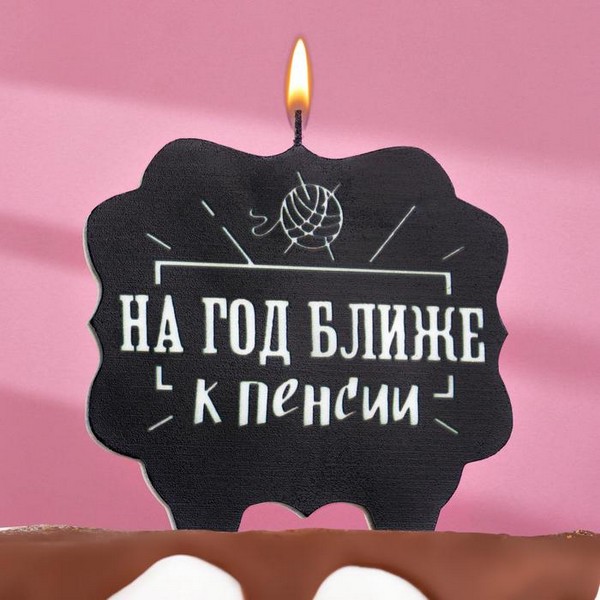 Свеча для торта "На год ближе к пенсии",10х10 см, черная 7761403 7761403