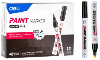 Маркер-краска Deli пулевидный наконечник, ширина линии 2 мм, черный EU500-BK