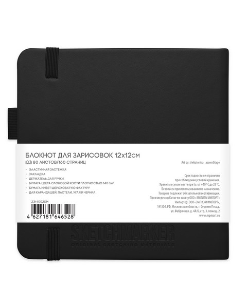Блокнот для зарисовок "Sketchbook" 120*120 мм, 140 г/м2, 80л., твердая обложка, черный, Sketchmarker 2314002SM