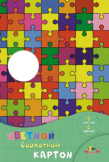 Набор цветного картона, бархат., фА4, 5л, 5 цв., "Цветной пазл", Апплика С1721-06