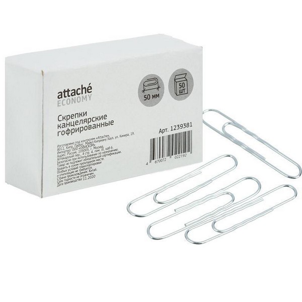 Скрепки металлические 50мм 50 шт. Attache Economy оцинкованные, гофрированные 1239381