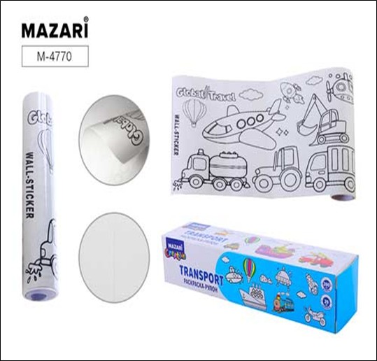 Раскраска-рулон 20х200см на клеевой основе TRANSPORT, с перфорацией, картонная коробка M-4770