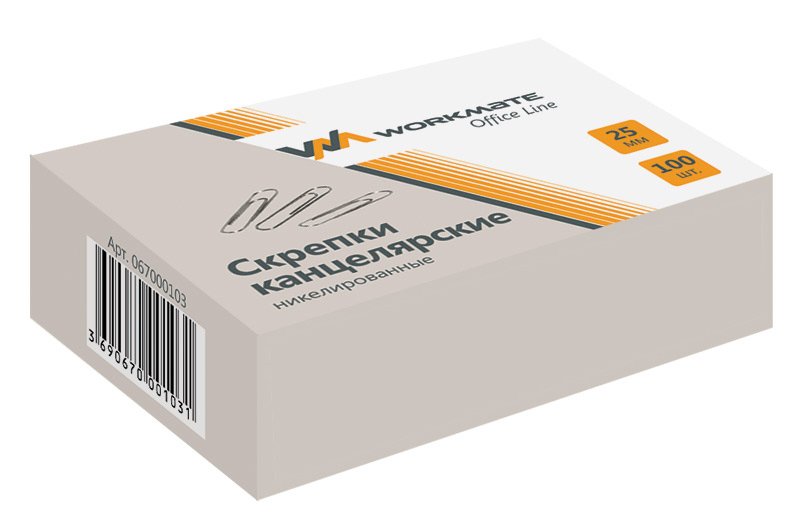Скрепки металлические 25мм 100 шт. Workmate никелированные, в картонной корбочке (10/500) 14-3664