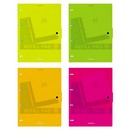 Тетрадь общая формата А4 (210х297 мм). Обложка из высококачественного износостойкого матового пластика с фактурой «песок». Яркие неоновые цвета обложки. В блоке 80 листов в клетку. Бумага офсетная плотностью 60 г/м2. Цвет линовки - синий. Скругленные уголки обложки. Тип скрепления - кольца. Обложка фиксируется клапаном с кнопкой. Прорези под кольца оснащены фиксаторами. Товар поставляется в нескольких вариантах цвета без возможности выбора.