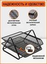 Лоток для бумаг горизонтальный ORANGE PEEL Premium, металлический черный, 2 секции 350*294*188 мм HY62002 BK