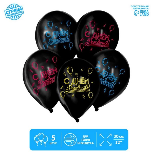 Шар латексный 12" "С Днем Рождения!", набор 5 шт. 5258835