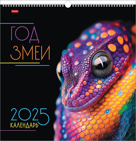 Календарь настенный перекидной 2025 г. 445х445мм КАРЕ "Год Змеи" бум. мелован. на гребне с ригелем в инд.упак.с европодвесом, Хатбер 12Кнп3гр_30798