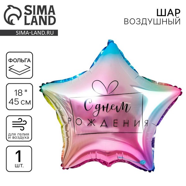 Фольгированный шар 18" «С днём рождения», градиент, звезда 10618046 10618046