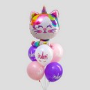 Букет из шаров "С Днем рождения, котик-единорог.", фольга, латекс, набор 6 шт. 5043984 5043984