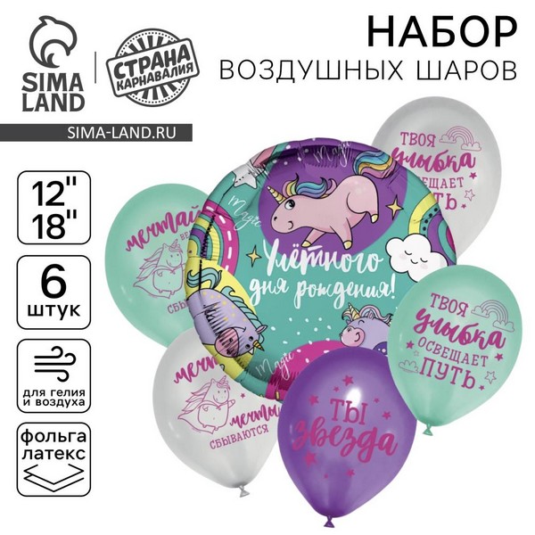 Букет из шаров «Улетного др», латекс, фольга, набор 6 шт. 9756919 9756919