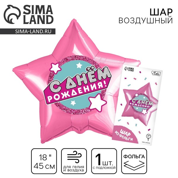 Фольгированный шар 18" "С днем рождения", звездочки, звезда, с подложкой 6932467 6932467