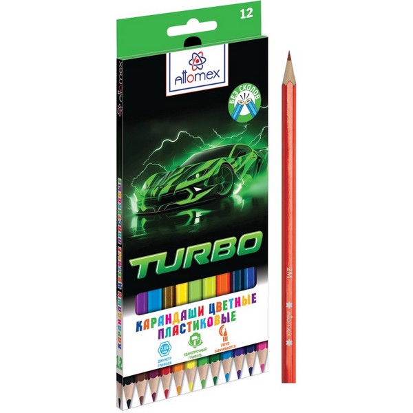 Карандаши 12цв., "Attomex. Turbo" пластиковые, 2М, диаметр грифеля 2,65 мм, шестигранные, в картонной коробке 5022548