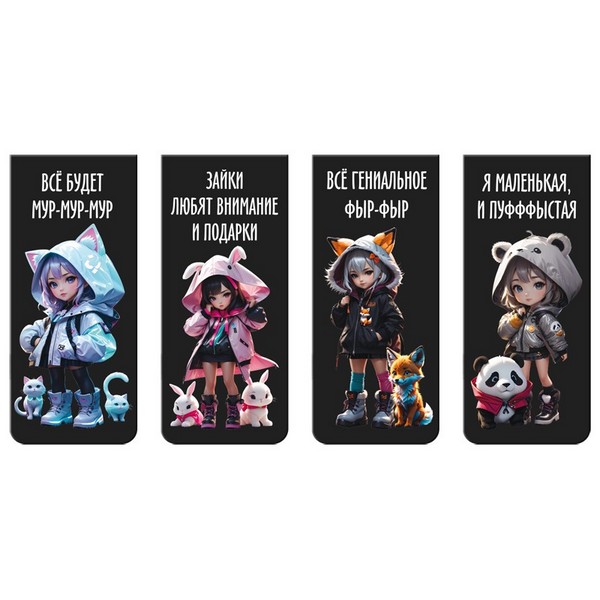 Набор закладок для книг "deVENTE. Korokoro" магнитных бумажных, 4 шт в блистерной упаковке, размеры закладок в сложенном виде 25x56,6 мм 8065500