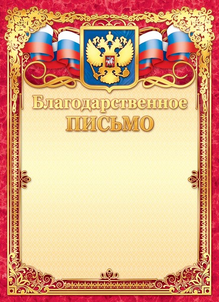 Бланк "Благодарственное письмо" (с гербом), ЛиС ОФГ-418
