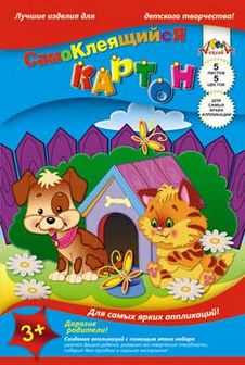 Набор цветного картона, самоклеящ., фА4, 5л., 5цв., "Щенок и Котенок", Апплика С1873-03