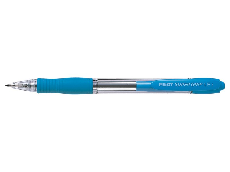 Ручка шариковая автоматическая PILOT "SUPER GRIP" 0.7мм синяя голубой прозрачный корпус с резиновым грипом BPGP-10R-F-SL