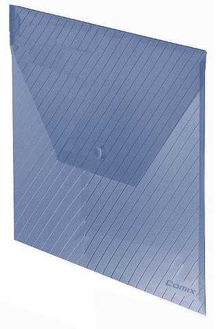 Папка-конверт пластиковая 0.17мм, на кнопке фА4, прозр.голубая, Comix (10/480) C330 BU